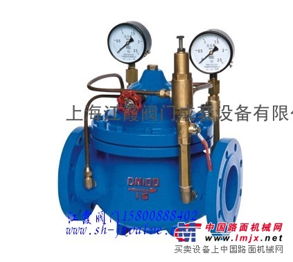 具有上述特性的阀门,在接近阀瓣的动作加速,易发生水锤的冲击,接近全闭时,阀门动作越缓慢越好,于是可在阀瓣上设置节流装置。另外先导阀的节流和动作部分要尽量避免设置特小口径的孔口,以免堵塞。必要时要加过滤网,定期检修及设置旁通管路。水力控制阀分隔膜型和活塞型两类,工作原理相同,都是以上下游压力差为动力,有导阀控制,使隔膜(活塞)液压式差动操作,完全由水力自动调节,从而使主阀阀瓣完全开启或完全关闭或处于调节状态。